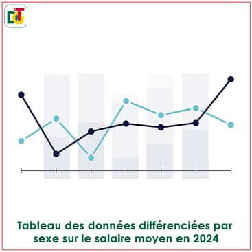 Tableau des données différenciées par sexe sur le salaire moyen en 2024